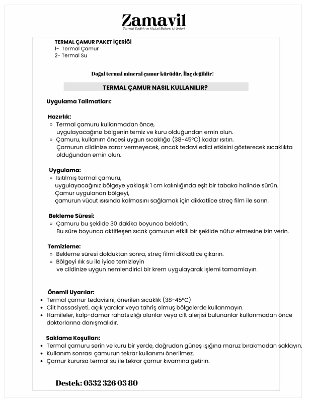 İçerik: Termal Çamur, Biberiye Yağı, Kapsaisin, Zencefil Ekstresi, Okaliptüs Yağı, Termal Su